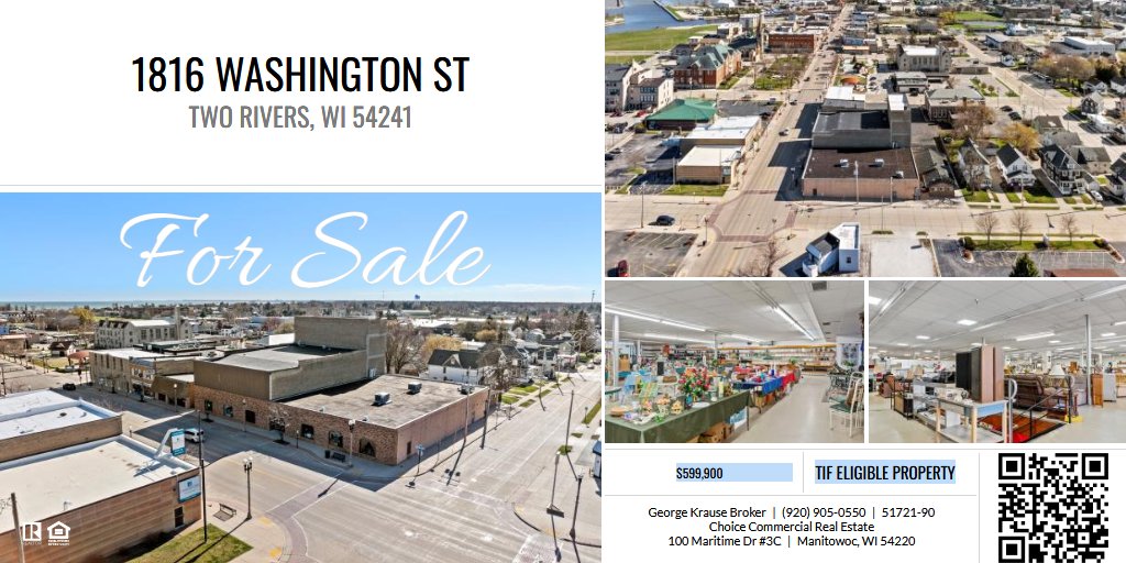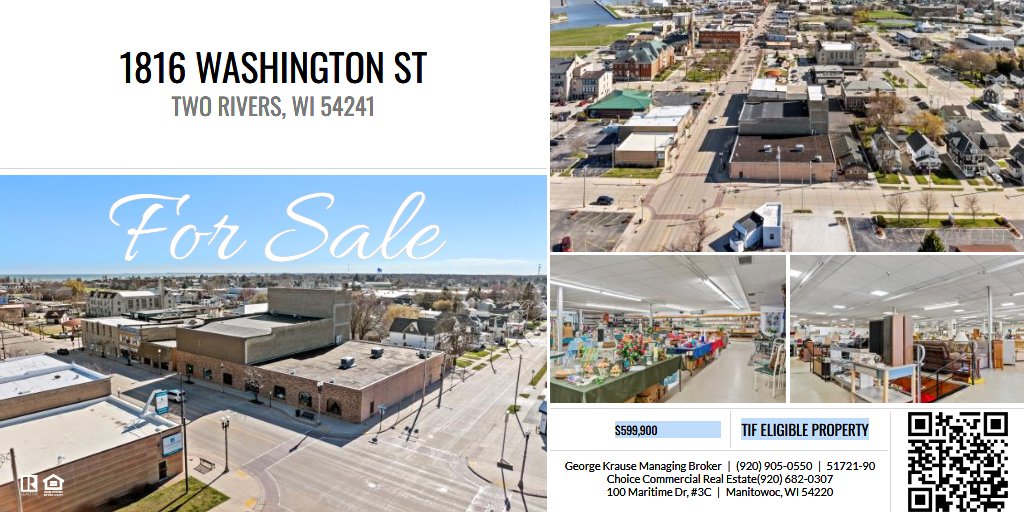Re-Development Potential Retail Building located in the heart of the downtown business district in the City of Two Rivers a Lake Michigan Community. Would make a great re-development project and is TIF eligible. Property is serviced by an freight elevator that reaches all 4 levels of the building. Main Floor and Basement levels provide 17,280 sq ft each and were used for retail purposes and the 2nd & 3rd floors provide 8,160 sq ft each used for storage. Building has a sprinkler system in place. Historically this property was originally built as the Rivioli Theatre and operated as a Vaudville & Movie Theatre from 1920's to the 1950's.