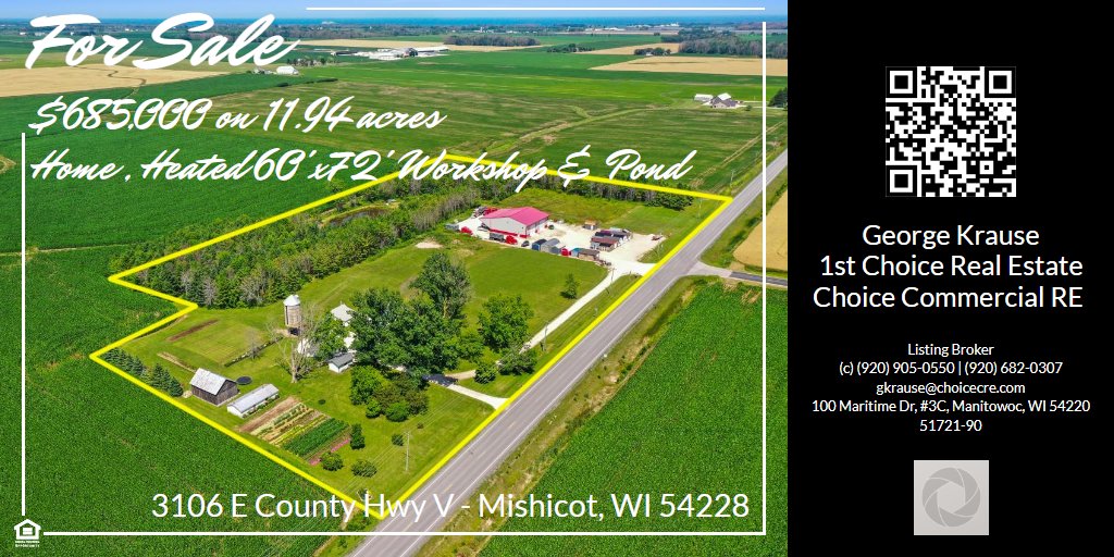 - Rural Home with 60’x72’ Commercial Building on 11.94 acres of land.