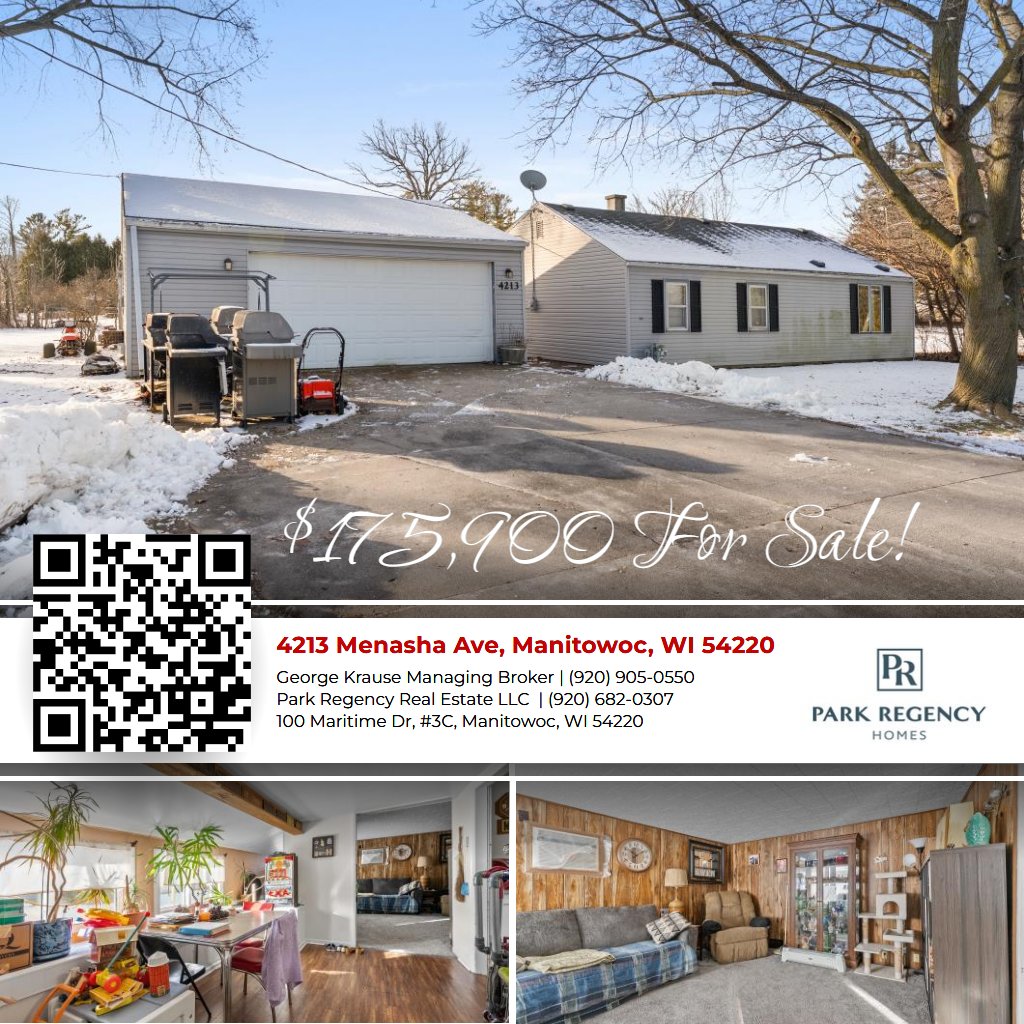 Affordable 3 Bedroom Ranch Style Home with 2.5 Car Detached Garage on spacious corner lot with huge back yard on Manitowocs northside.
