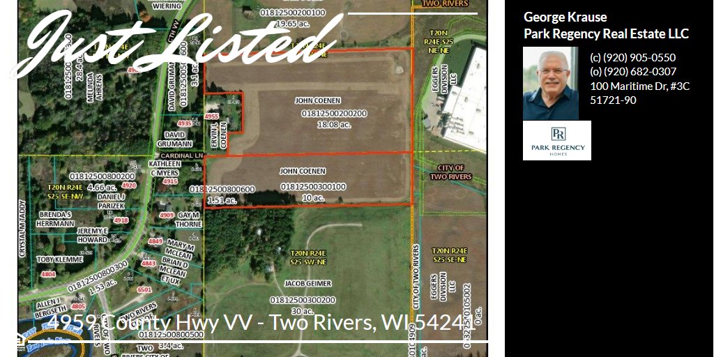 28.08 acres of residential zoned land on 2 contiguous tracts of land 18.08 & 10 acres. The land is zoned RR as rural residential so it is zoned for residential single family homes. This land has been recently used for agricultural purposes and can be used for that as well. If you have been looking for a buildable land close to the Two Rivers city limits then this one provides that for you. Seller may be willing to subdivide and will discuss that with anyt potential buyer(s) as to how that could be done.